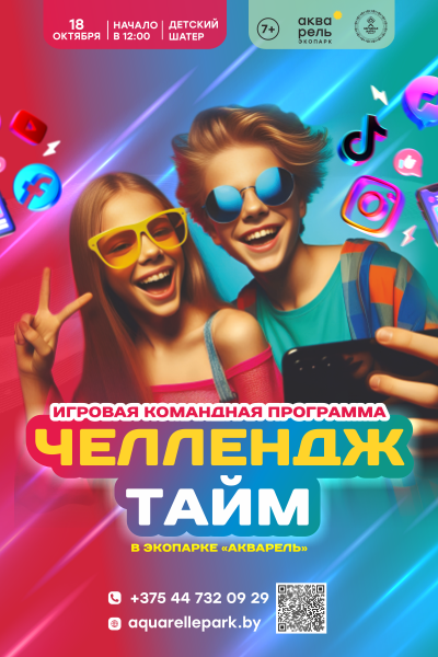 Экопарк «Акварель» приглашает детей принять участие в уникальной игровой программе Challenge Time. Это динамичный и увлекательный формат, где команды ребят пройдут серию веселых и интеллектуальных испытаний на время.