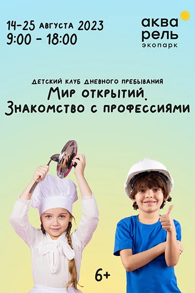 Летние смены детского клуба «Мир открытий. Знакомство с профессией» пройдут в экопарке «Акварель» с 14 по 25 августа.