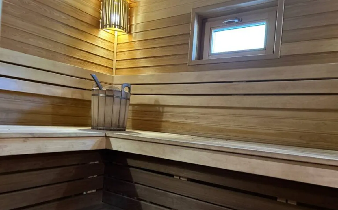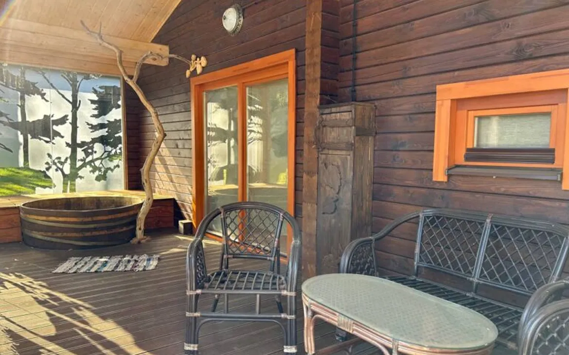 - Настоящая русская баня: пар от души, сеансы на 10 человек; после жаркой парной вас ждет уютная комната отдыха.