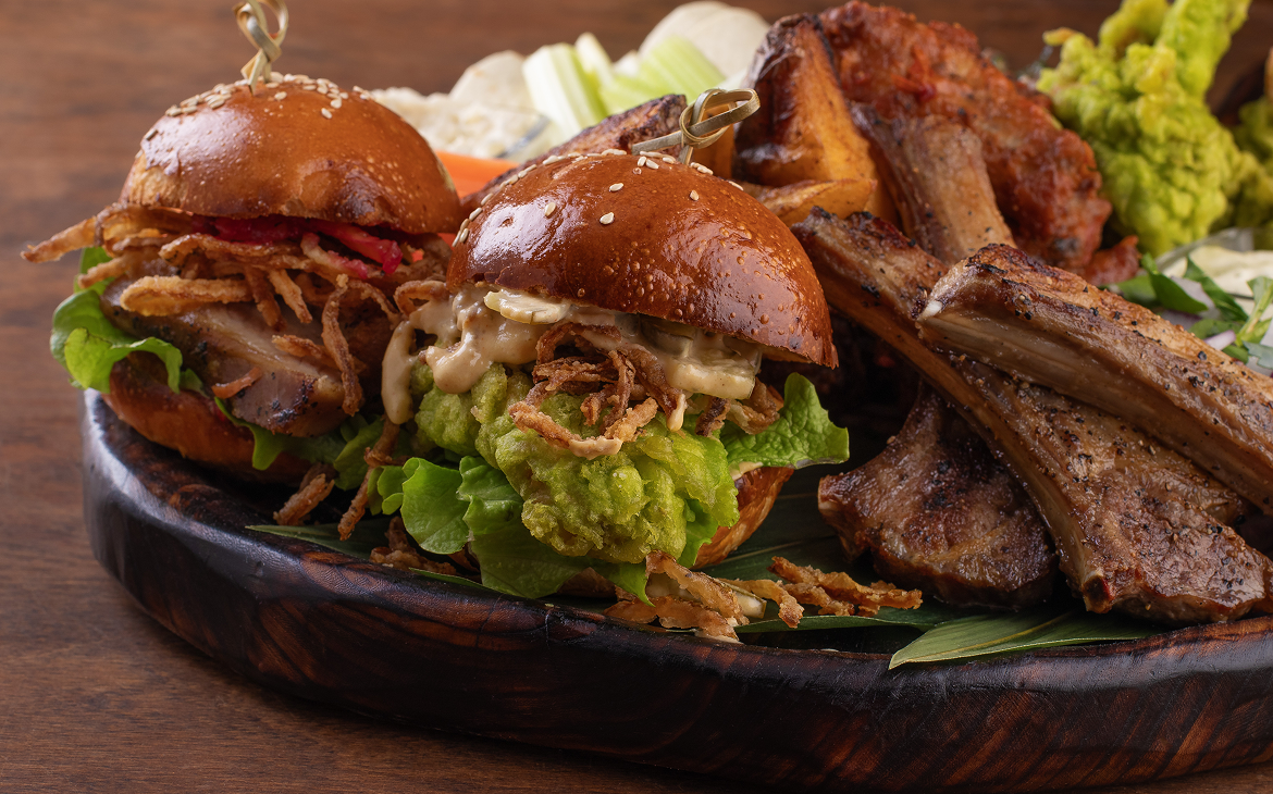 - минибургер с ребрышками;