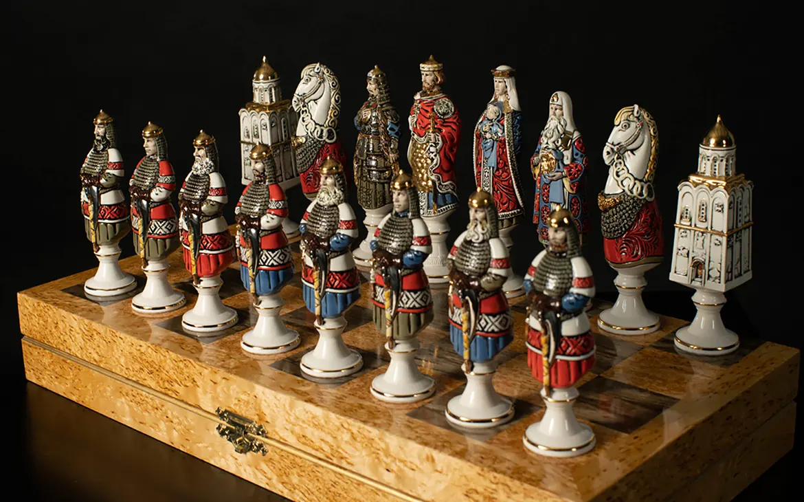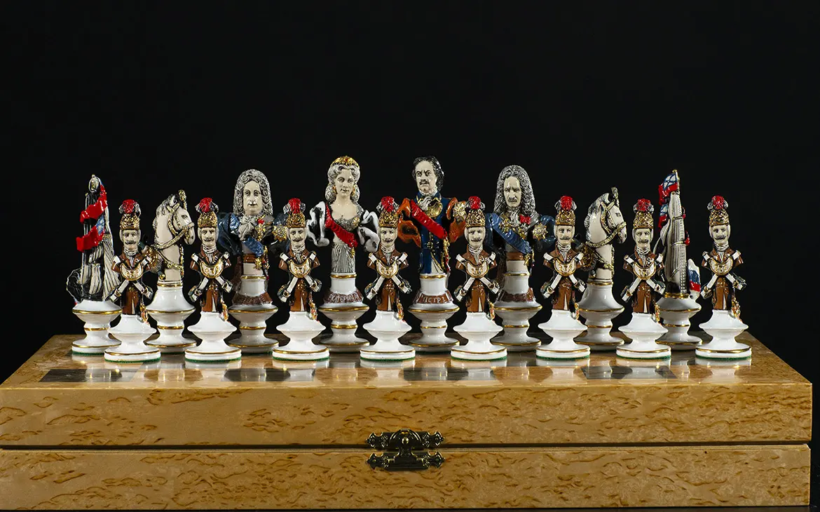 Здесь вы можете выбрать из нескольких коллекций авторских шахмат из фарфора: «Бородино», «Невский», «Петр I», «Шахматы острова Льюис», «Турнир», «Карнавал». Коллекционные сувенирные шахматы наверняка покорят даже самого привередливого любителя этой настольной игры и обязательно восхитят искушенного коллекционера неординарных вещей. Выглядят они действительно шедеврально – каждая фигурка как произведение искусства.