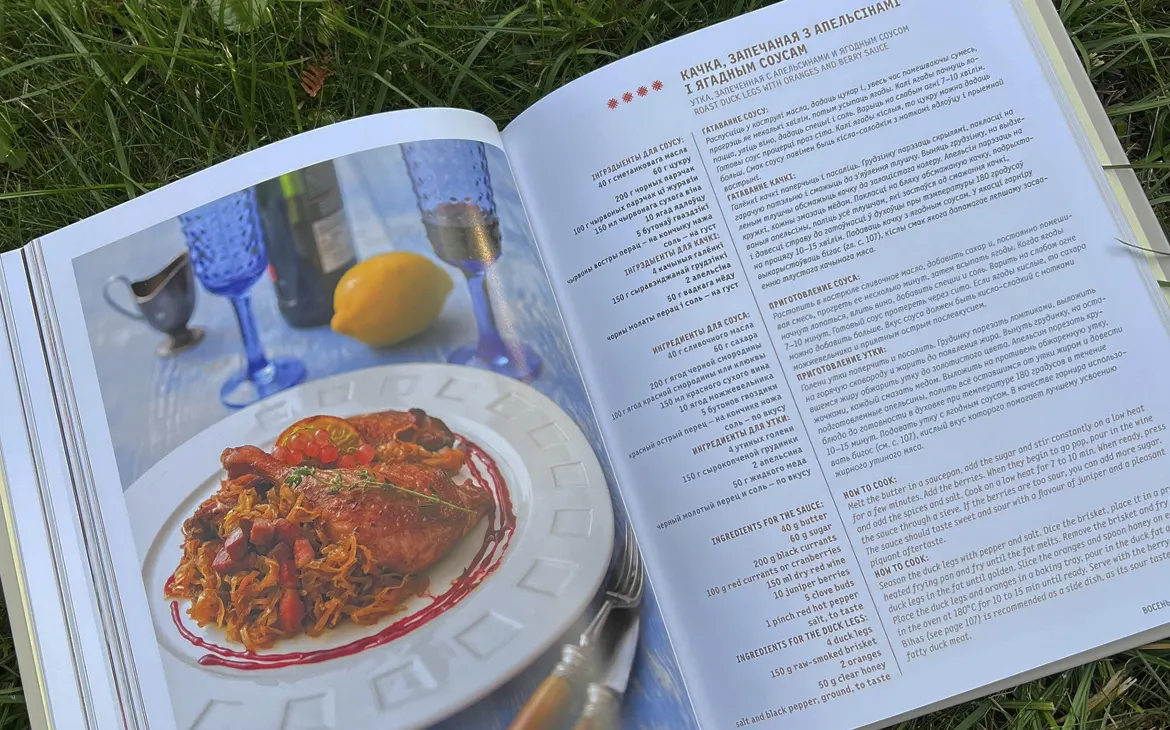 Каждому блюду и напитку соответствует красочная фотография, описание ингредиентов и технологии приготовления, а также увлекательный экскурс в историю.
