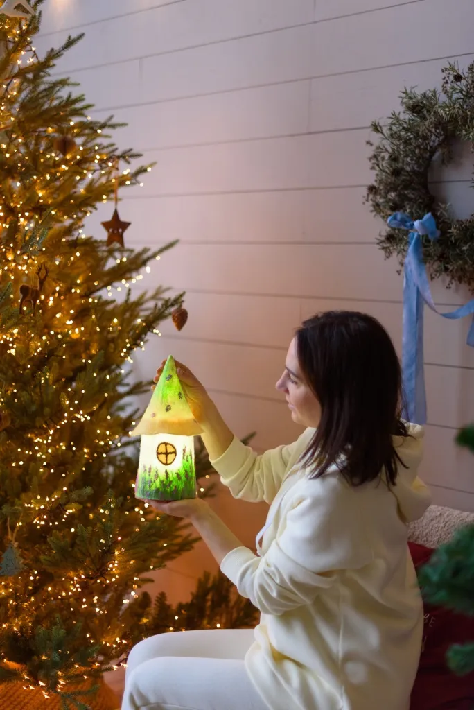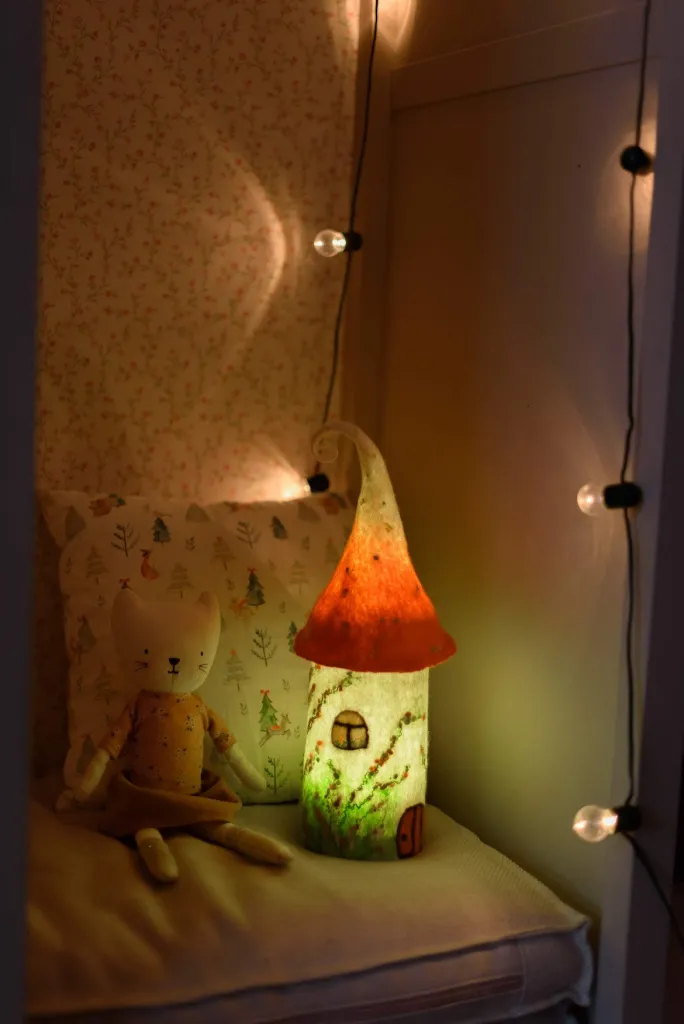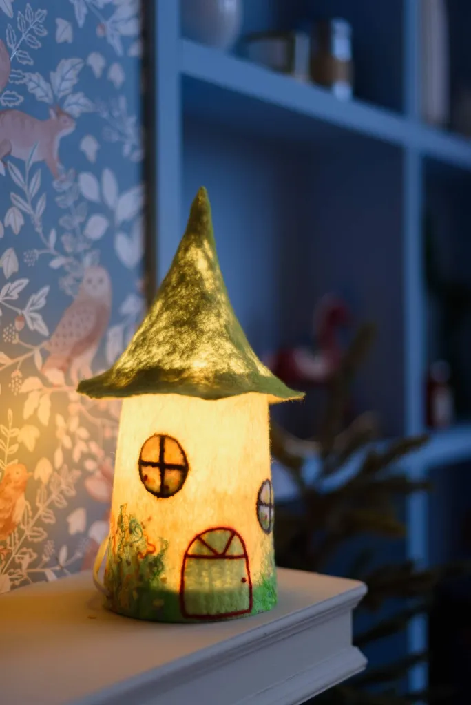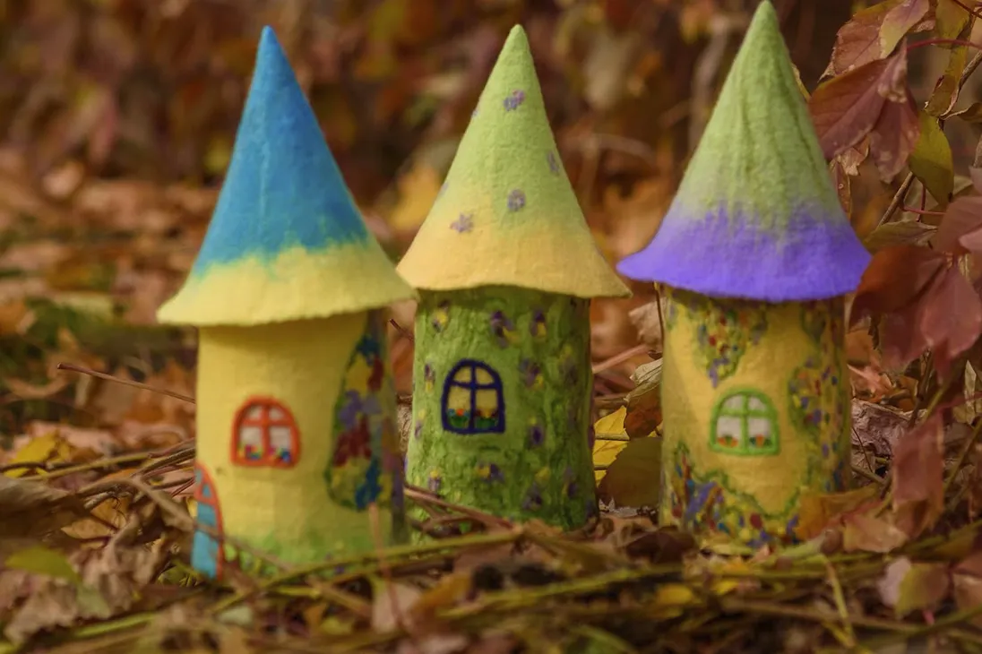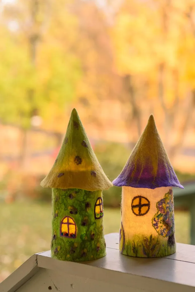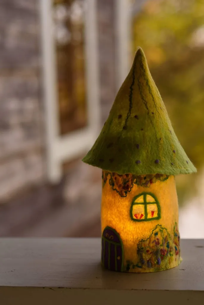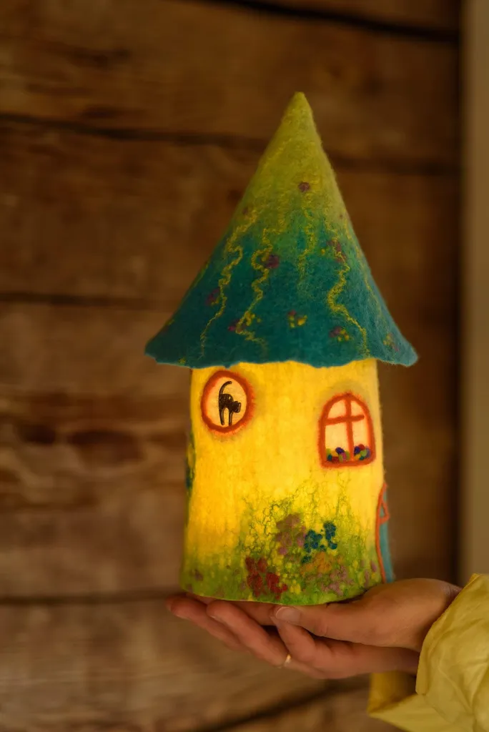 Присмотритесь к этим необычным изделиям ручной работы: сказочные домики-светильники выполнены из экологически чистых материалов - овечья шерсть, натуральные волокна крапивы, шелка, льна. Они дают в меру яркий, теплый и мягкий свет, при котором обычное чаепитие осенним вечером превращается в самое душевное и уютное.