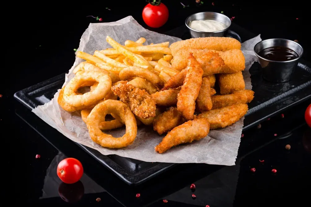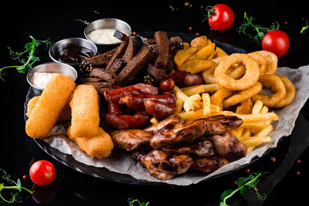 Среди горячих закусок есть «пивные тарелки» на большую компанию, традиционные гренки, сэндвичи, куриные наггетсы и крылышки – все, что отлично подойдет к бокалу пенного.