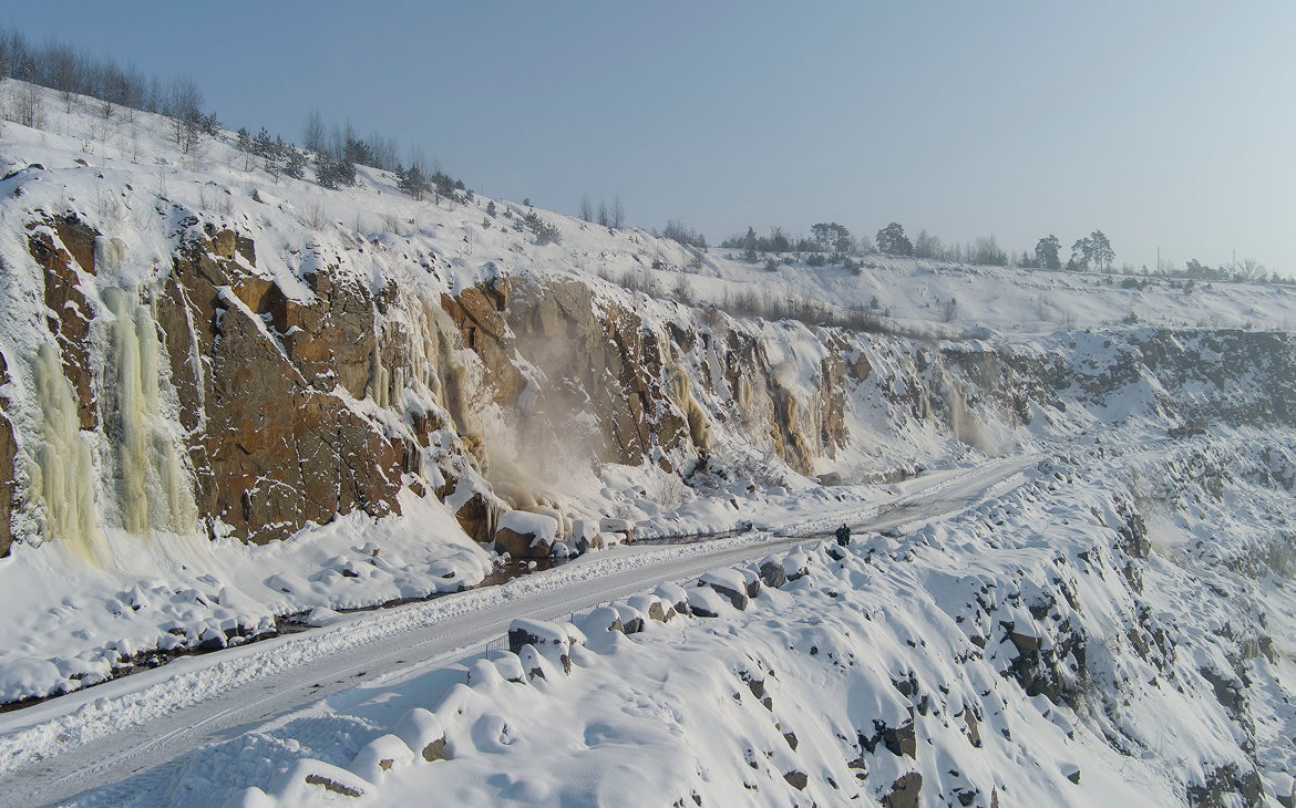 Зима в Беларуси может быть по-настоящему впечатляющей, если знать, куда ехать. Гранитный карьер «Микашевичи» на РУПП «ГРАНИТ» в холодный сезон превращается в один из самых необычных природных ландшафтов страны, и эту красоту стоит увидеть каждому. Рассказываем, что ждет вас на экскурсии в гранитном карьере.