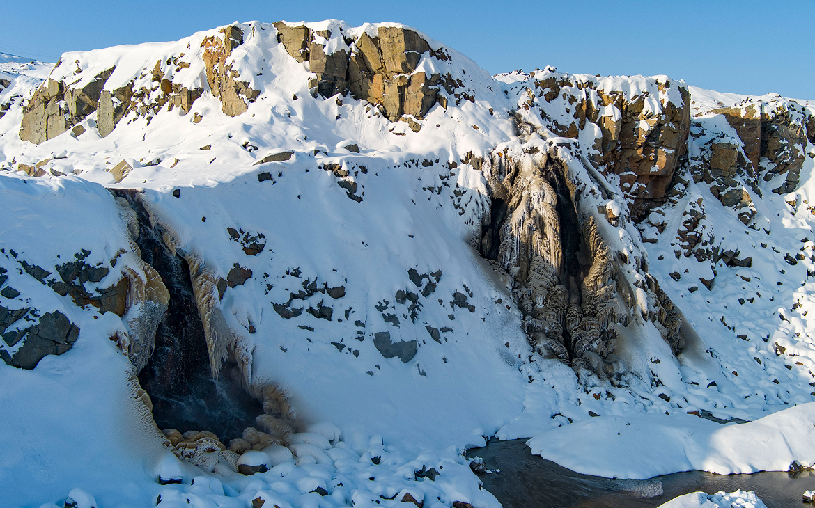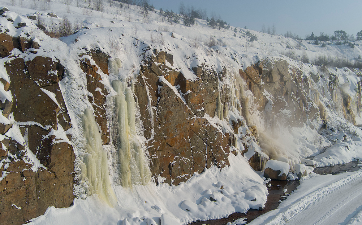 Главные зимние герои здесь — замерзшие водопады. Потоки воды, стекающие по отвесным скалам, застывают прямо на ходу, образуя сложные ледяные формы и каскады, напоминающие хрустальные занавесы. Каждый морозный день создает новый рисунок — такие пейзажи невозможно повторить дважды.