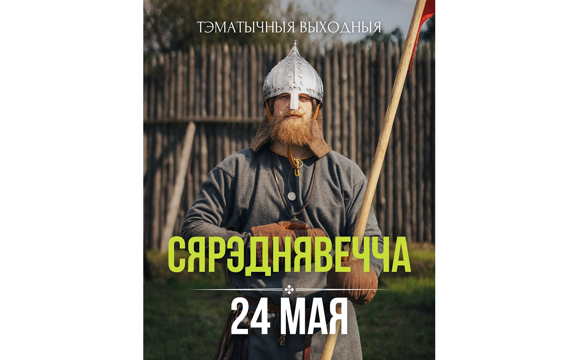 24 мая – Сярэднявечча: займальныя турніры са шчытом, мячом і дзідай. Экскурсія па гарадзішчы, знаёмства з даспехамі часоў ранняга Сярэднявечча, магчымасць пабіцца на пратэктаванай зброі.