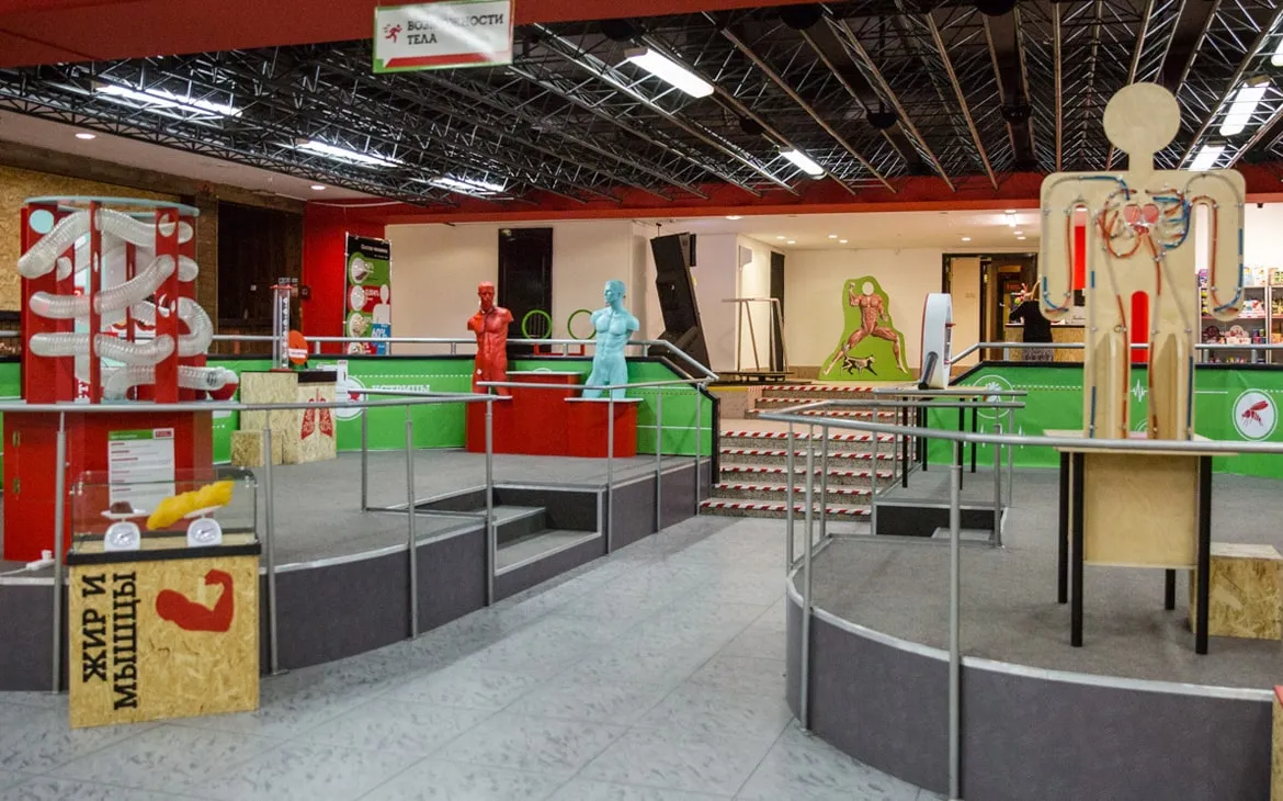 Музей занял около 600 квадратных метров на месте ночного клуба «Центр». Попасть внутрь можно со стороны Октябрьской площади. Пространство разделили на 7 тематических зон: «Возможности тела», «Технологии и VR», «Органы чувств», «Развитие организма», «Анатомия человека», «Животные и микроорганизмы», «Мастер-классы». По словам представителей музея, экспонаты собраны со всего мира, а некоторые изготовлены в Беларуси.