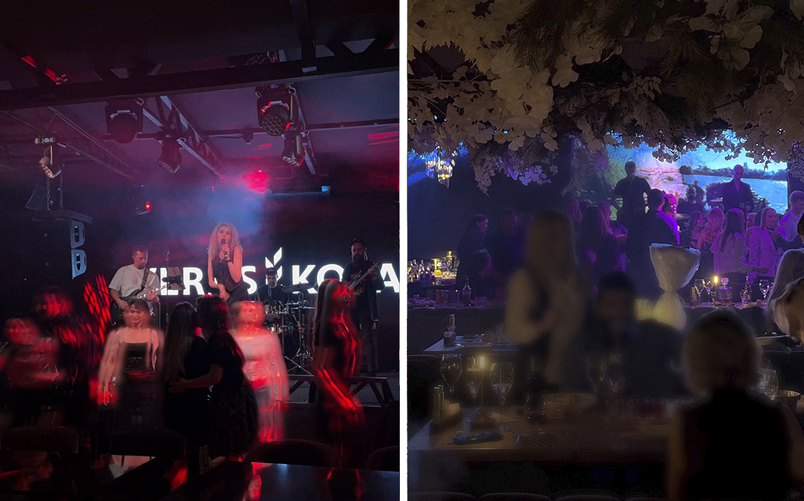 VERAS I KOLAS — пространство для встреч любого формата. Дни рождения, корпоративы, семейные праздники, романтические ужины, дружеские вечера и шумные вечеринки по пятницам и субботам. Атмосфера располагает к тому, чтобы смеяться, делиться новостями, праздновать и сохранять лучшие моменты.