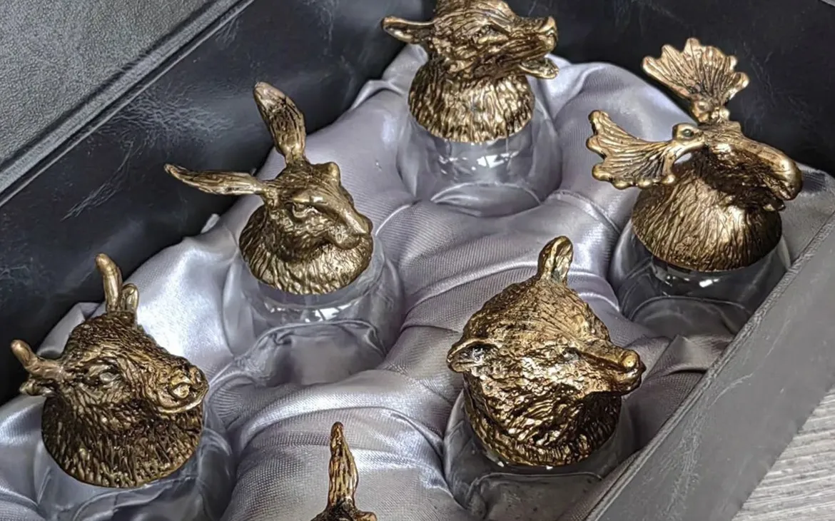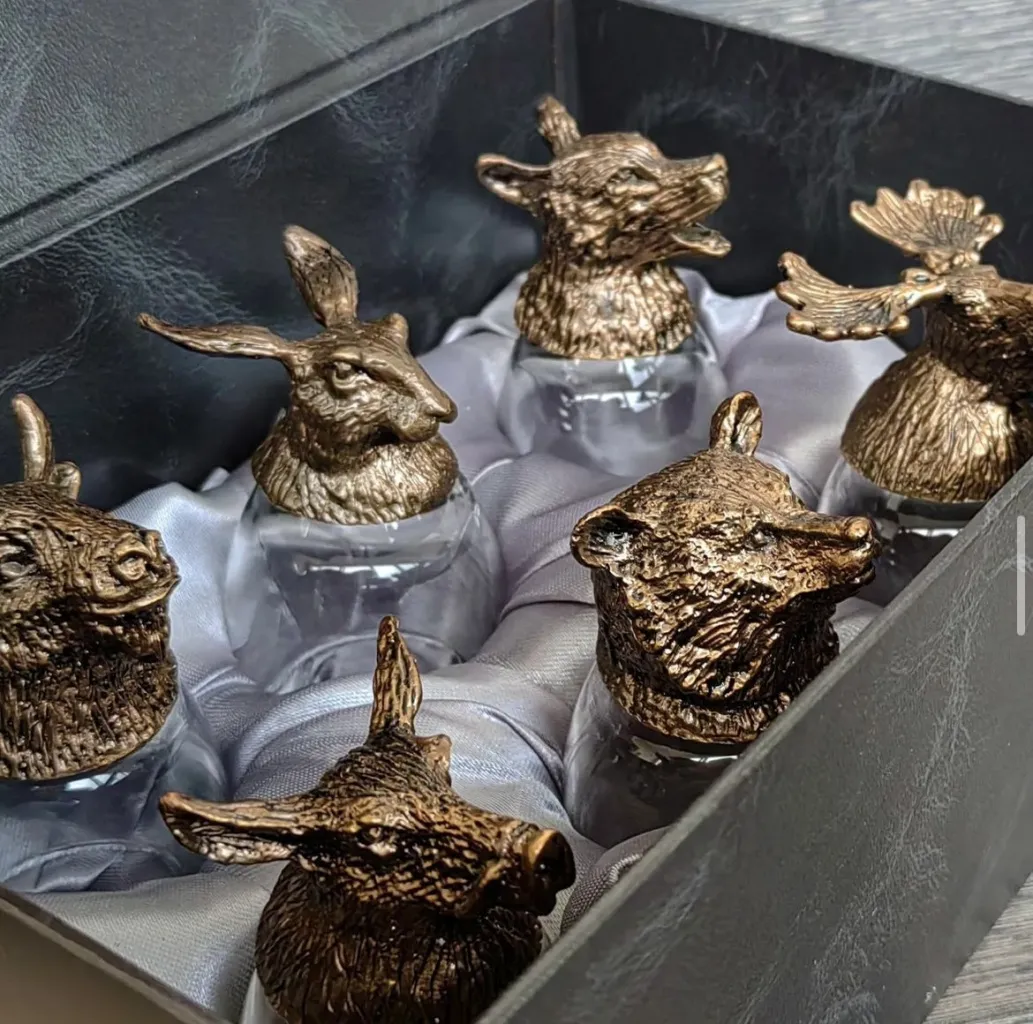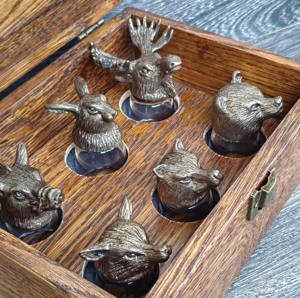 Стильные рюмкки-перевертыши подарят своему владельцу незабываемые эмоции, ведь их дизайн действительно впечатляет: основание каждой выполнено из бронзы в форме головы животного, которые населяют Беловежскую пущу! Посмотрите, как это красиво.