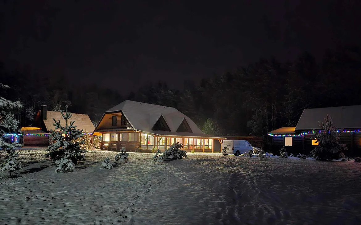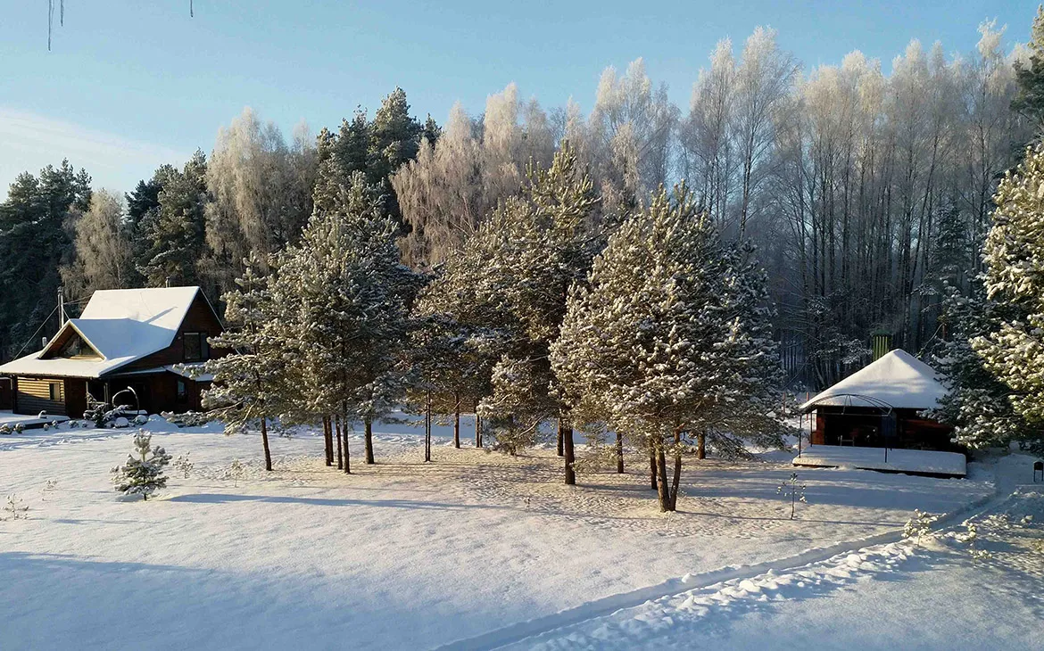 В каждом коттедже стоит украшенная ёлка, на территории атмосферу создает праздничная иллюминация. Гостей ждут гуляния у праздничного костра, барбекю-фест от хозяев усадьбы, снежные забавы, зимний футбол, баня и сауна. Можно отправиться на прогулку по «Тропе здоровья» к заснеженному озеру или на экскурсию в г. Браслав, который всего в 4 км от усадебного комплекса.