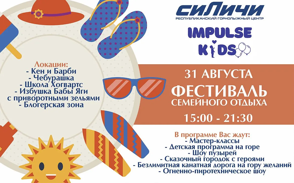 Провожаем лето вместе с Республиканским горнолыжным центром «Силичи» и Impulse Kids! 31 августа здесь пройдет большой фестиваль семейного отдыха!