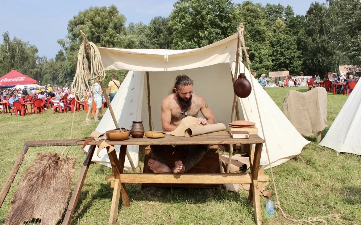 Палатки ремесленников, интерактивные зоны с мастер-классами и главная сцена с полем боя развернулись на территории английского парка.