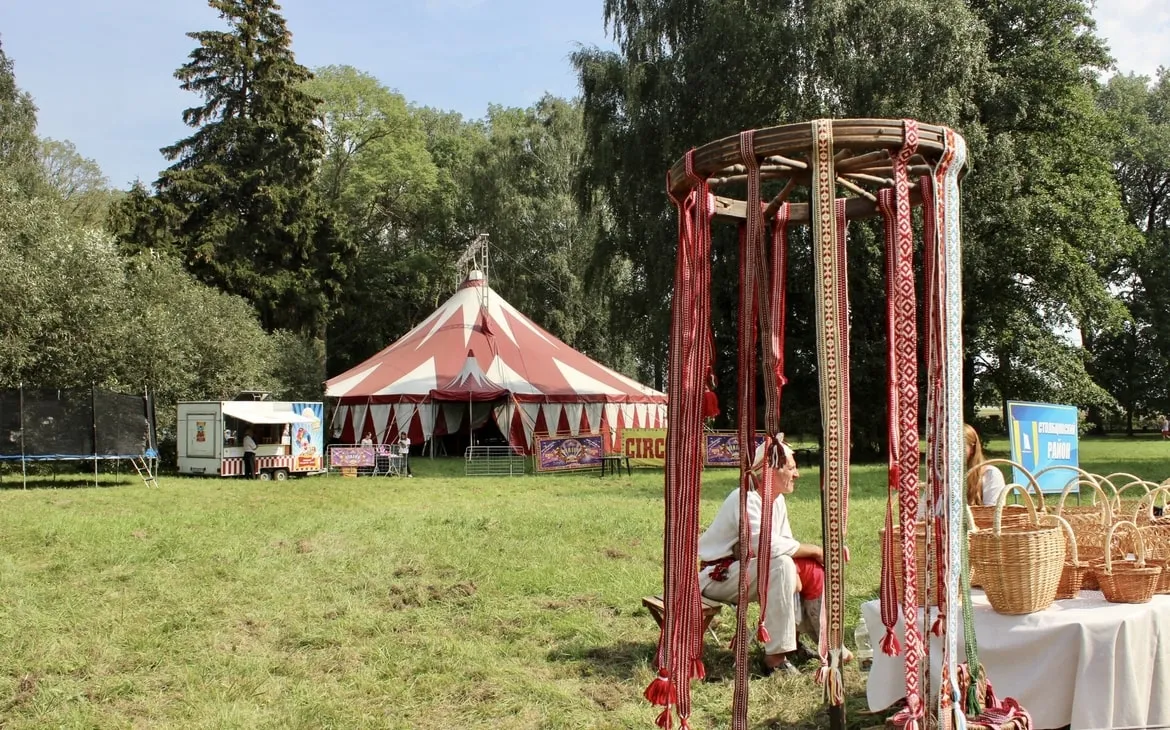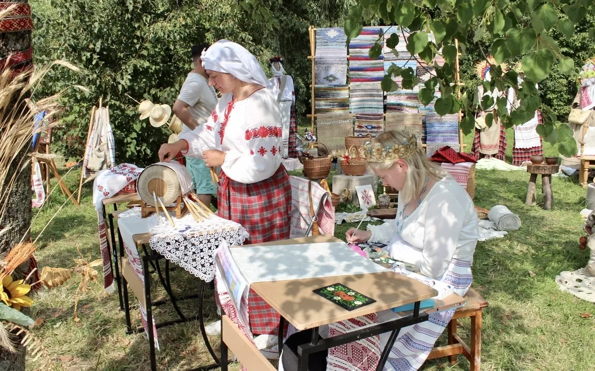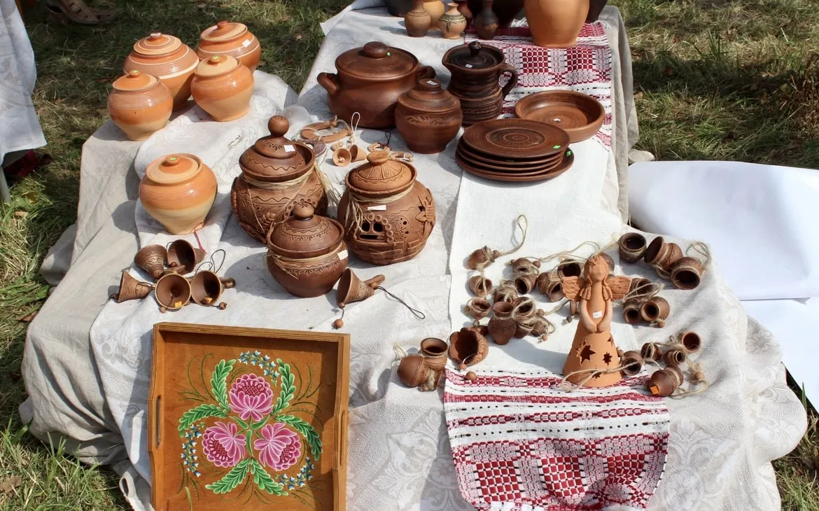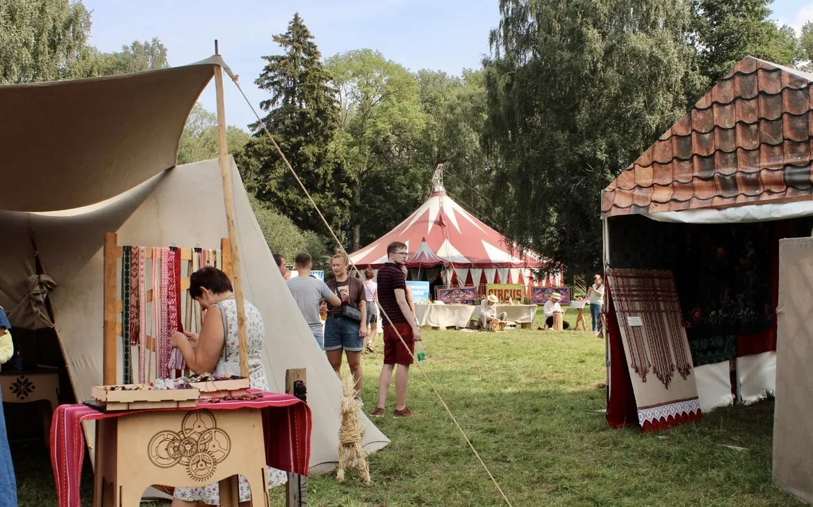 Большую часть территории фестиваля заняла ремесленная ярмарка. В торговых палатках продавали кожаные сумки и кошельки, плетённые лапти, украшения, вязанную одежду и игрушки, деревянную и керамическую посуду. Местные ремесленники были рады поделиться опытом и приглашали зрителей на мастер-классы по сыроварению, стеклодувству, ковке, ткачеству, вышивке и резьбе по дереву.
