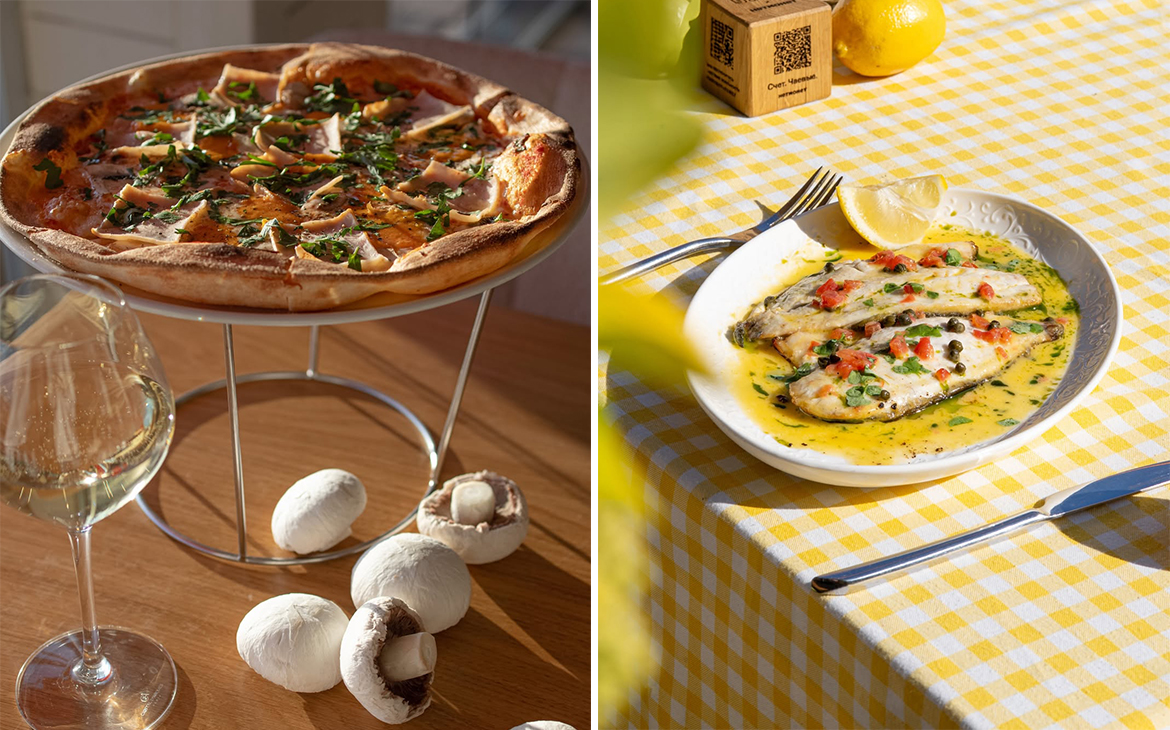 Паста, равиоли и тесто для пиццы готовятся вручную из итальянской муки. В меню — джелато, премиальные стейки, свежие морепродукты на гриле и другие специалитеты, без которых невозможно представить Италию. Дополняют гастрономический опыт домашний лимончелло и фирменный «Негрони», выдержанный в дубовых бочках для более глубокого вкуса.