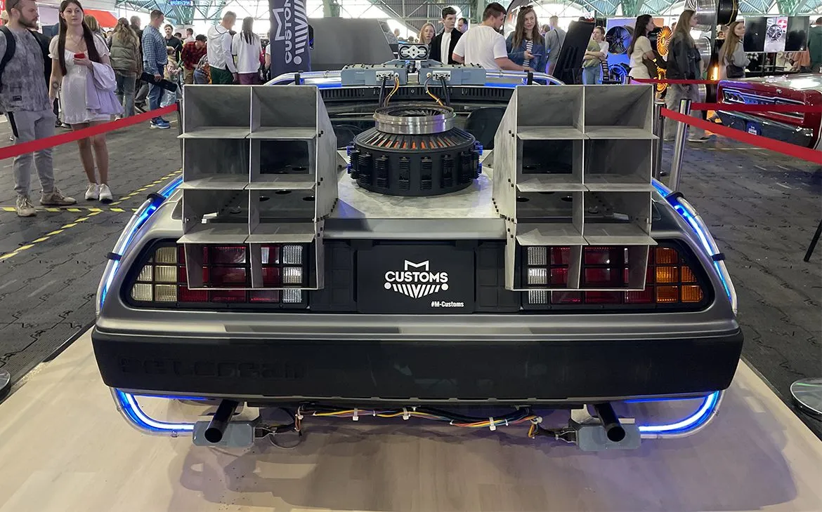 На экспозиции красовалась еще одна кинозвезда, увековеченная в трилогии «Назад в будущее» — DeLorean DMC-12. Специально для выставки был установлен стилизованный обвес, чтобы воссоздать атмосферу, как фильме.