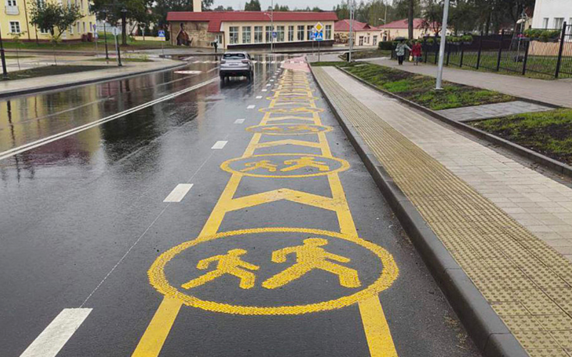Особое внимание было уделено зонам возле образовательных учреждений. Для обозначения мест посадки и высадки детей впервые использовалась яркая желтая разметка, выполненная холодным пластиком, красным контуром были выделены аппликации на пешеходных переходах, что значительно повысило их видимость и привлекло внимание водителей.