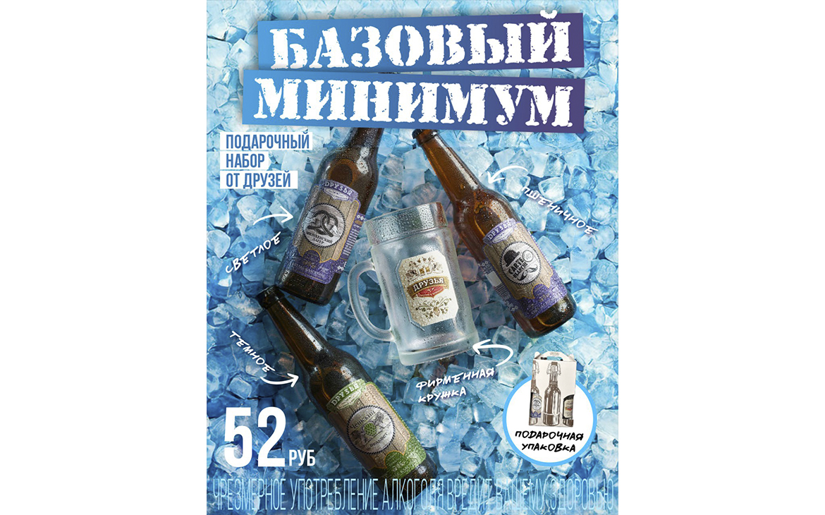 Для тех, кто любит конкретику, «Друзья» подготовили готовый подарочный набор за 52 BYN: три вида фирменного пива (светлое, тёмное и пшеничное) и брендированный бокал. Универсальный вариант — и для ценителей крафта, и для тех, кто просто любит атмосферные вечера.