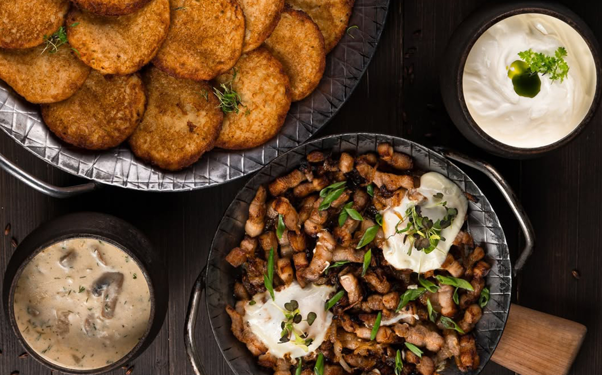В новом меню — классические белорусские закуски и сытные горячие блюда, знакомые с детства и переосмысленные с авторским акцентом. Начать дегустацию предлагают с белорусского сала трёх видов с хреном и ржаным хлебом «Бородино», закуски из солёной скумбрии, форшмака из сельди с яблоком и лимоном или традиционного пачастунка по-белорусски.