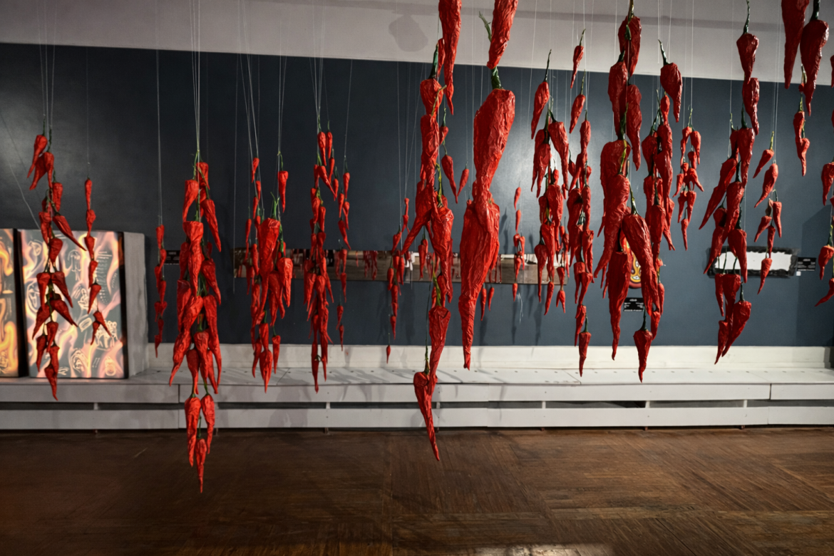 В огненной экспозиции вас ждут смоляные чудовища с горящими глазами, связки красных чили, плюшевые губы и языки — настоящий визуальный пожар и must visit для любителей эффектного контента.