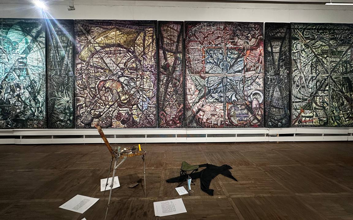 Главное визуальное впечатление выставки — работы Алеся Родина, одного из самых значимых представителей экспериментальной живописи.