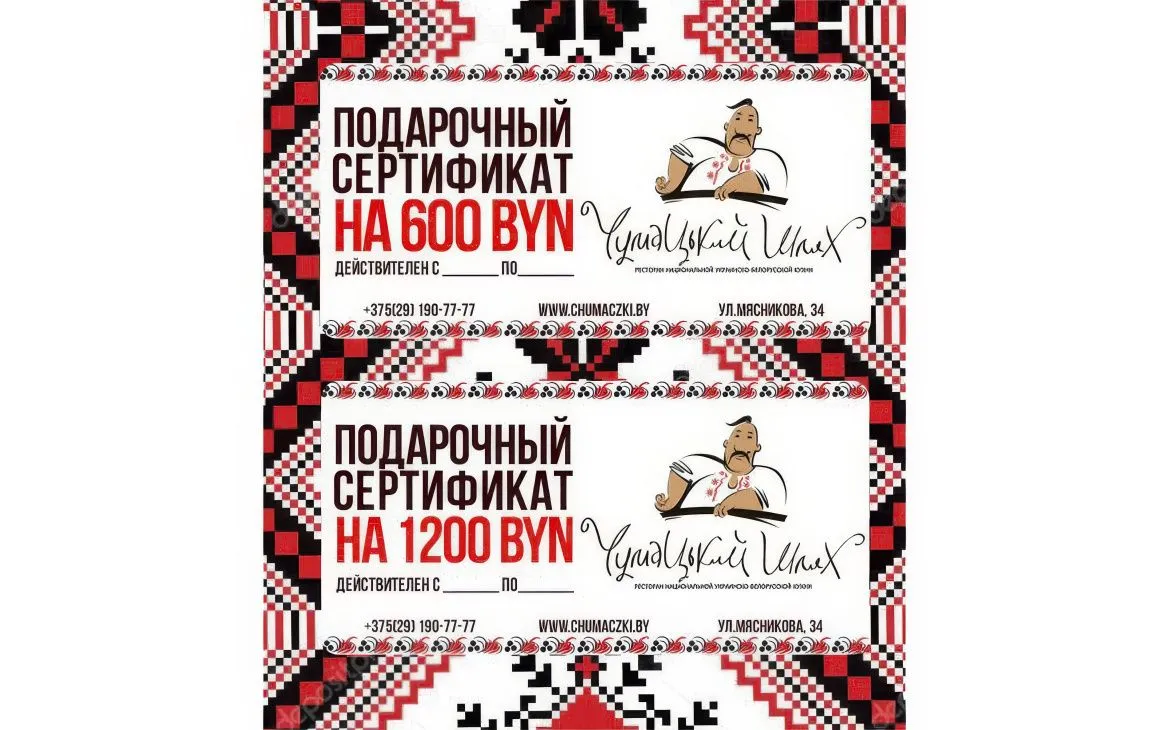 Здесь можно приобрести подарочные сертификаты номиналом от 50 до 1000 руб., которые станут приятным презентом. При покупке сертификата на сумму 500 и 1000 руб. «Чумацький Шлях» дарит еще 100 и 200 руб. к номиналу соответственно.