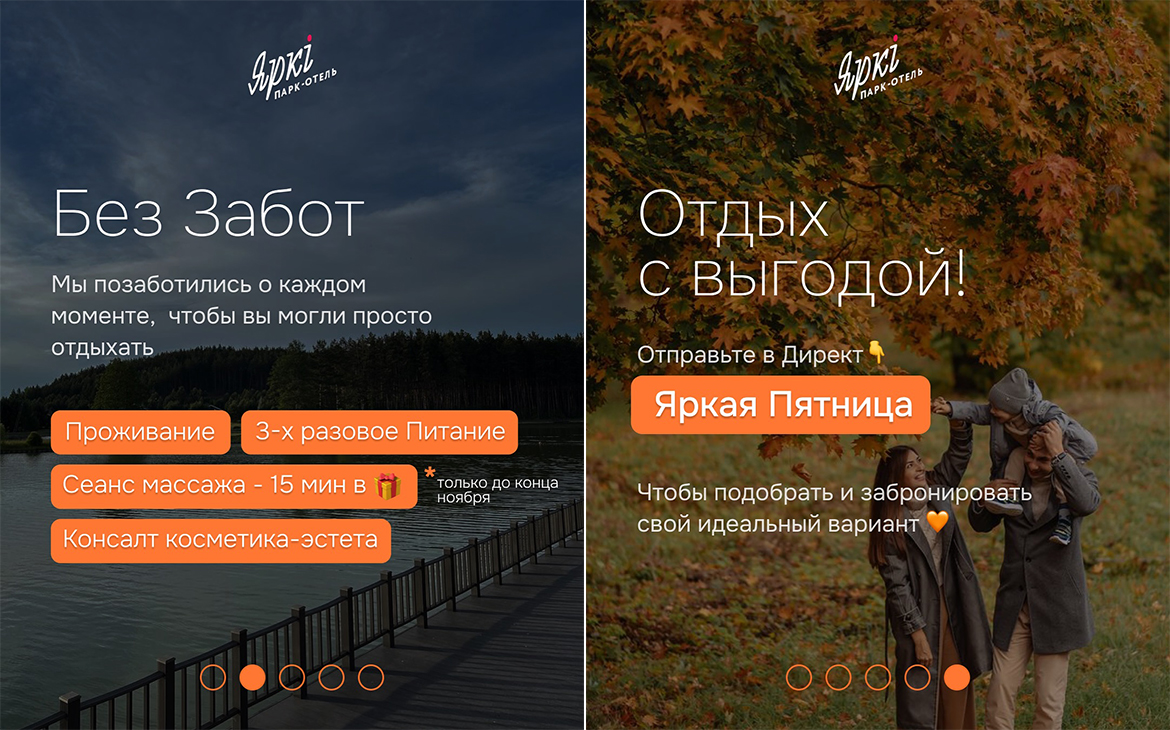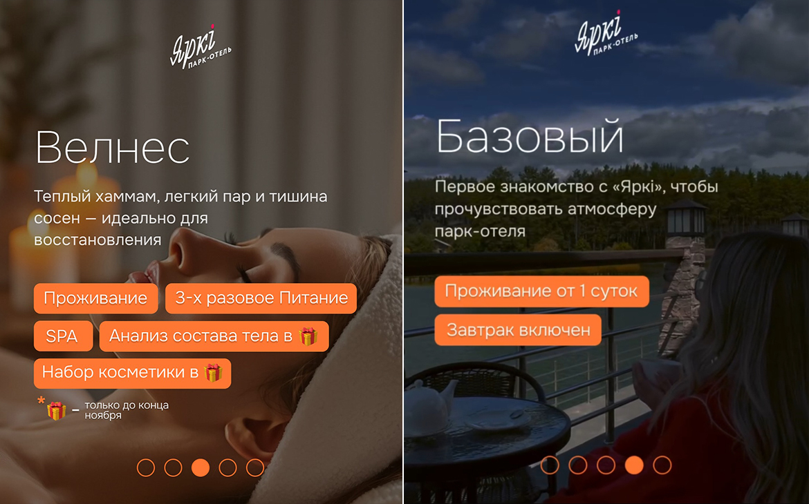 В Парк-отеле «Яркі» с 11 ноября по 10 декабря - скидка -25% на основные тарифы отдыха: «Без забот», «Велнес», «Базовый», «Отдых с выгодой».