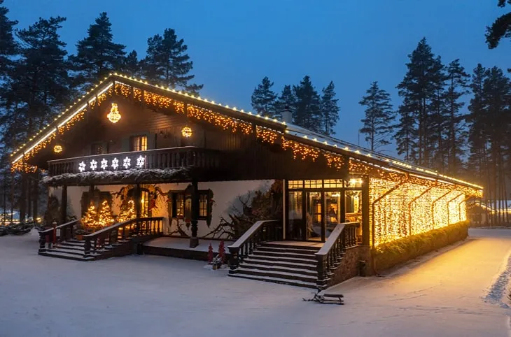 Размещение предлагается в современном гостиничном комплексе премиум-класса (от 390 руб. в сутки) и коттеджах (от 600 руб. в сутки). Есть ресторан, кинозал, барбекю-беседки, сауна и баня по-чёрному, тренажёрный зал, бильярд. Можно отправиться на джип-сафари по местности или на экскурсию.