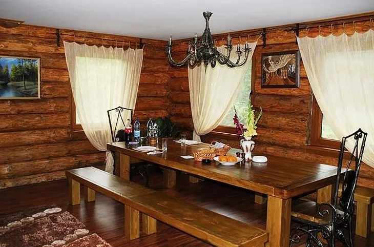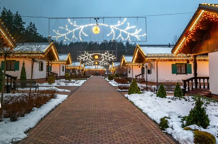 Для размещения предлагаются разные дома и номера стоимостью от 100 руб. в сутки. Включено трёхразовое питание. Пансионат ориентирован на семейный отдых, поэтому в нём найдётся подходящий досуг для гостей любых возрастов: есть игровая площадка для детей, спортивный зал, настольный теннис, пейнтбол, снежная горка для катаний на тюбинге, а ещё проводятся экскурсии по местным достопримечательностям.