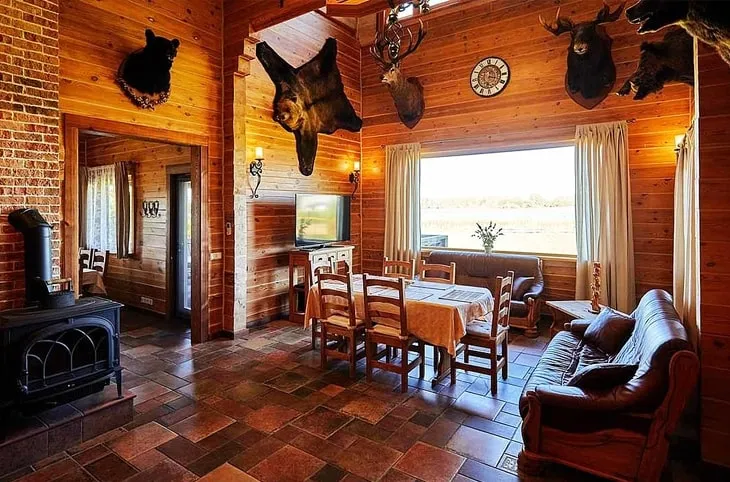 В Ecoclub можно не только порыбачить, но и поохотиться. В охотугодьях обитает более 20 видов охотничьих животных и около 30 видов птиц. Здесь могут приготовить трофейную, загонную, коллективную охоту, из засады, на водоплавающую и болотную дичь. При этом можно рассчитывать на сопровождение высококвалифицированными егерями, современное инженерное обустройство охотугодий – например, есть стационарные и временные вышки. Есть и «Охотничья» усадьба, предоставляющий такой же досуг, как и усадьба «Рыбачья». Только тематика интерьеров там соответствующая. Цена суточной аренда одной избы – от 650 руб.