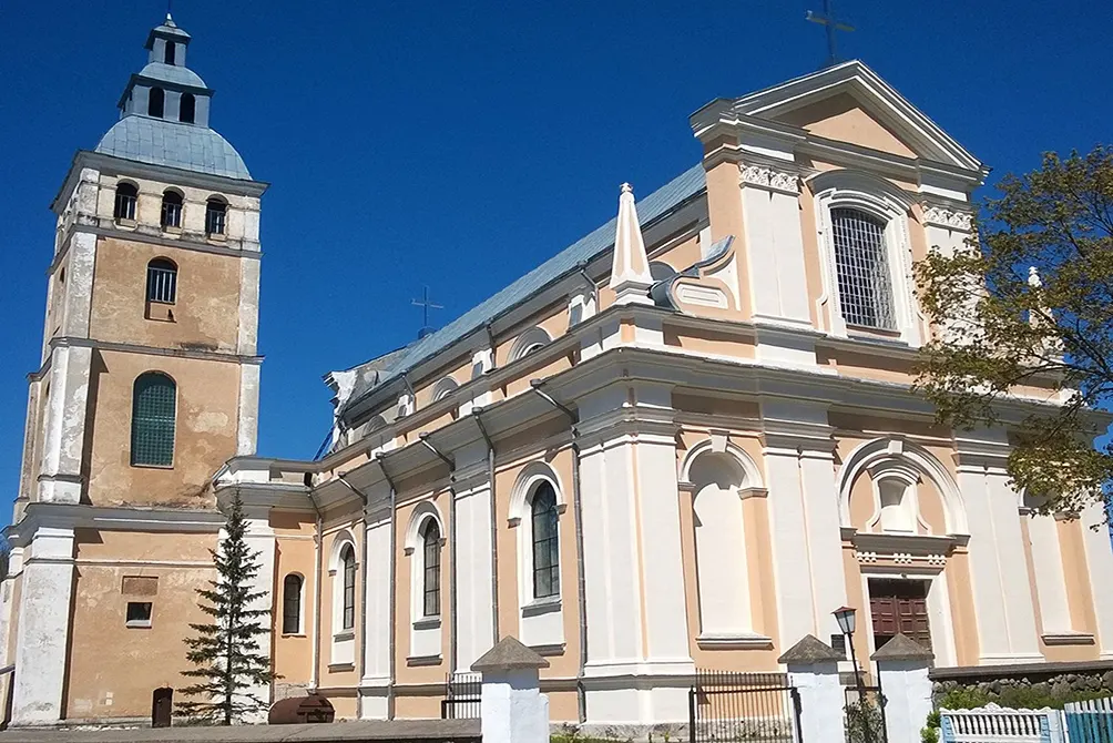 Остановка в Вишнево, где со статного холма раздаются размеренные аккорды архитектуры костела Св. Тадеуша.