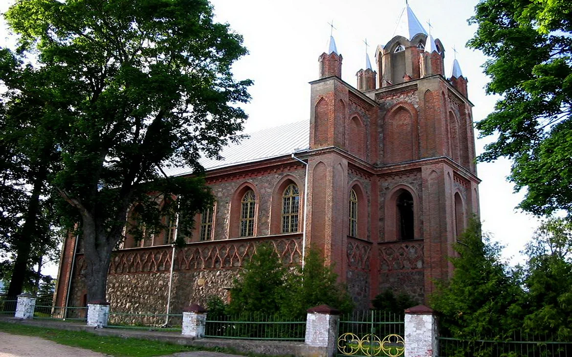 Далее отправление в Жупраны, где похоронен великий поэт Ф. Богушевич. В 1900 году его отпевали в стенах Петро-Павловского костела, огненно-красный готический силуэт которого величаво поднимается над бывшим местечком.