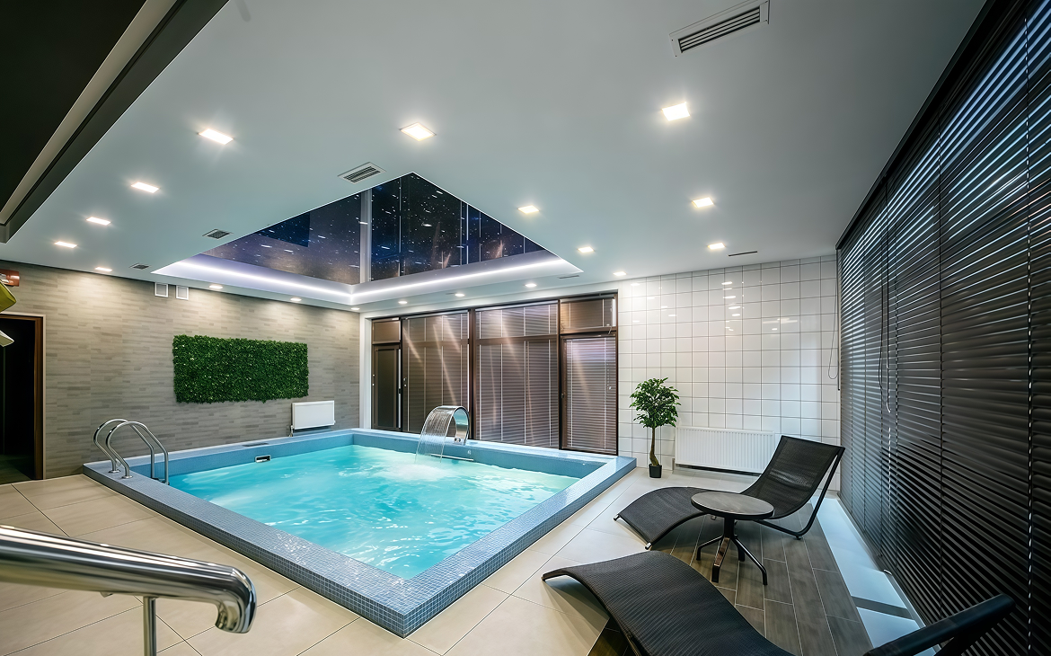 Для активного и расслабляющего отдыха гостям доступна аквазона с баней, сауной и бассейном с водными тренажёрами. Всё необходимое — березовые веники, полотенца и средства гигиены — уже включено.