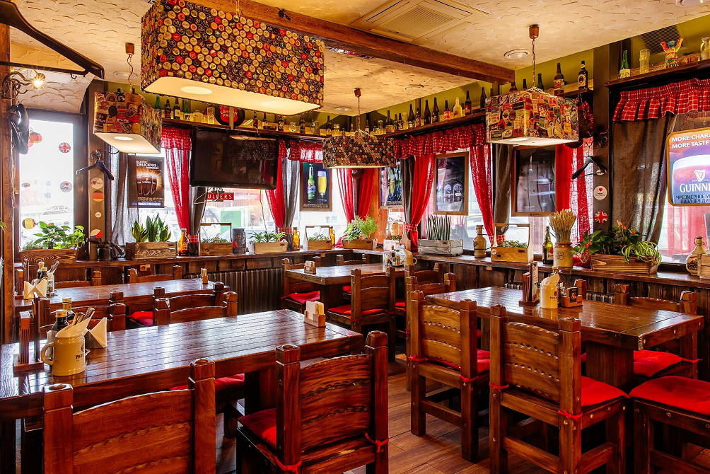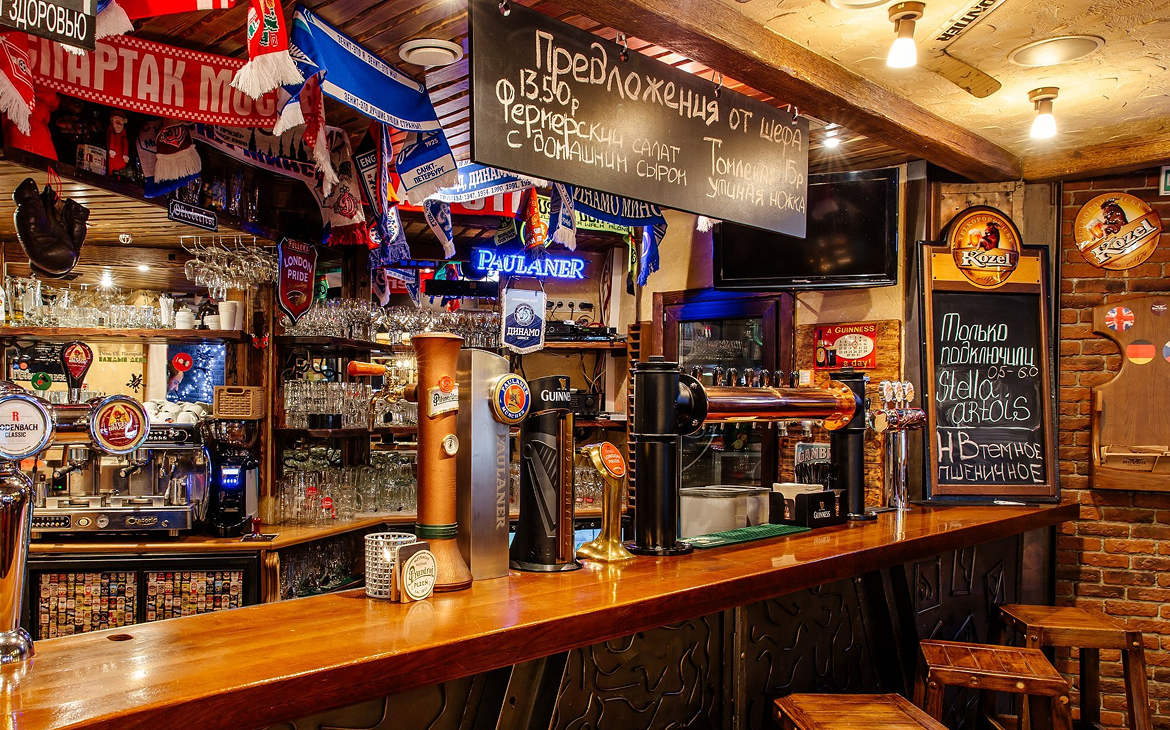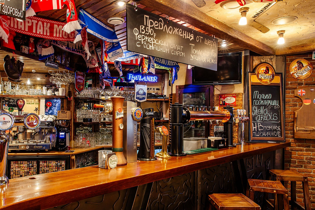 Заведение удобно для любого формата визита: обед, ужин или вечер с друзьями за бокалом пива. Барная зона и кеги с напитками органично вписаны в пространство, а для любителей футбола предусмотрены телевизоры с трансляциями.