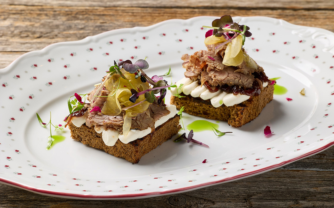 Только лучшее мясо, пропитанное ароматом хвои и свежего воздуха, немного елового масла, капля коньяка, горсть ягод — так в «Літвінах» позволили природе самой рассказать свою историю.
