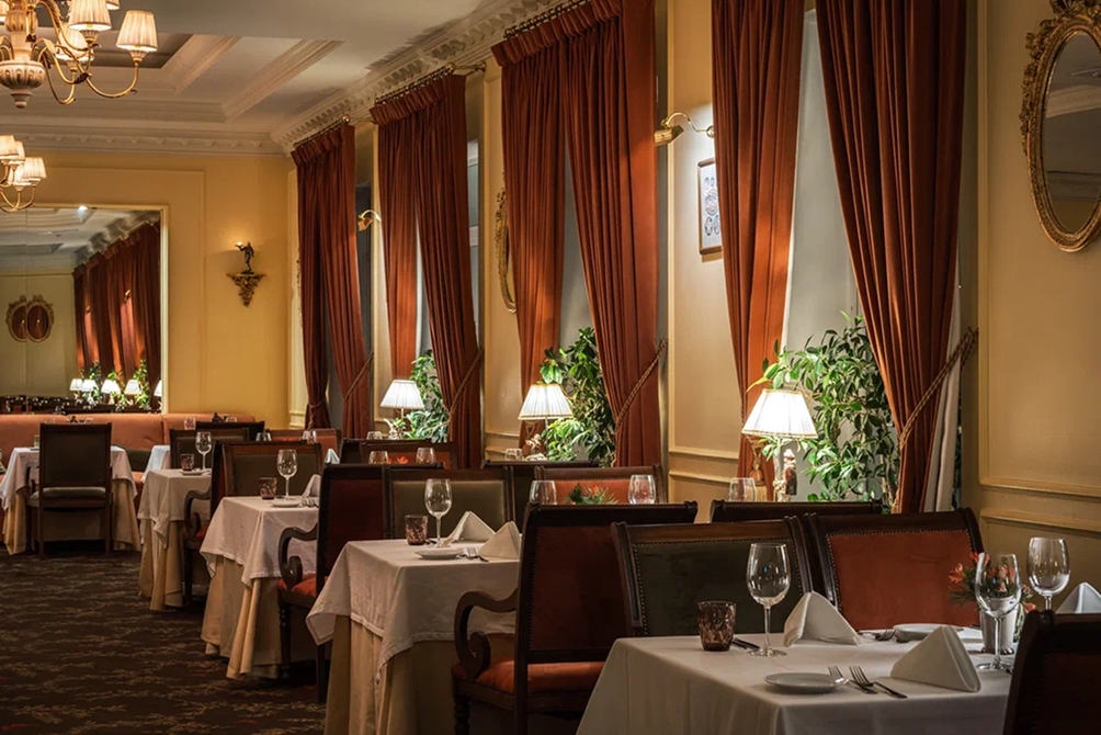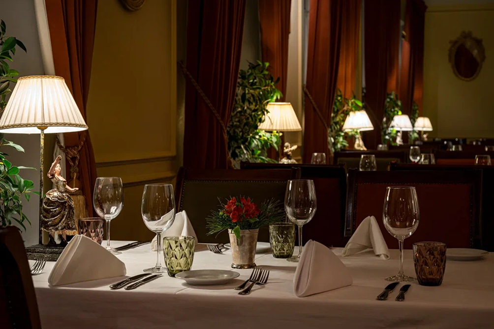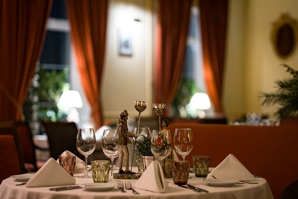 Ресторан в Кронон Парк Отеле предлагает гостям погрузиться в атмосферу гастрономических открытий под звуки живой музыки. В Главном зале ресторана царит атмосфера аристократичной роскоши: тяжелые бархатные портьеры, мягкие диваны и кресла, приглушенный свет свечей и французских люстр, звуки рояля.