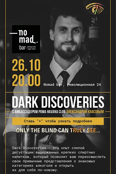 26 октября у гостей NOMAD BAR есть уникальная возможность принять участие в слепой дегустации под названием Dark Discoveries.